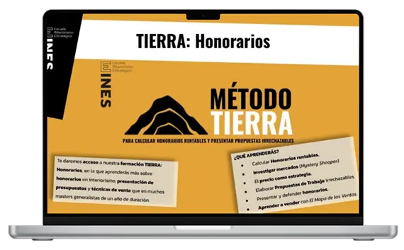 Te daremos acceso a nuestra formación TIERRA: Honorarios, en la que aprenderás más sobre honorarios en interiorismo, presentación de presupuestos y técnicas de venta que en muchos masters generalistas de un año de duración.