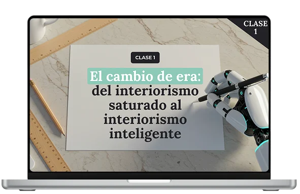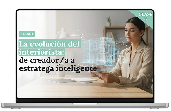 Son 3 clases prácticas donde descubrirás cómo usar la Inteligencia Artificial con criterio para optimizar procesos, liberar tiempo y volver a disfrutar del interiorismo sin perder tu esencia creativa.